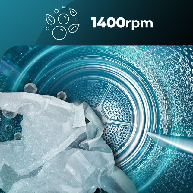 - Regula sus revoluciones: podrás programar las revoluciones de la lavadora hasta 1400 rpm, adaptándose así a tus tejidos y necesidades.